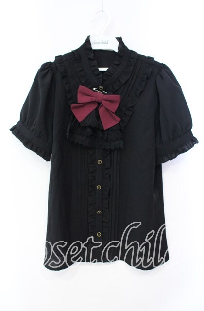 Amavel / プリーツジャボ付きブラウス F クロ O-25-10-20-017-CA-BL-OW-OS