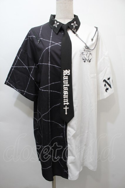 NOEMIE / 鉄線配色ユニセックスシャツ 黒x白 S-25-10-16-022-LO-TS-HR-ZS [2100020000032769-S-25-10-16-022-LO-TS-HR-ZS]