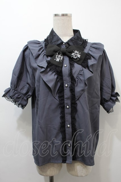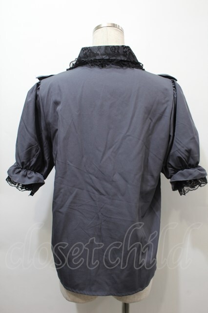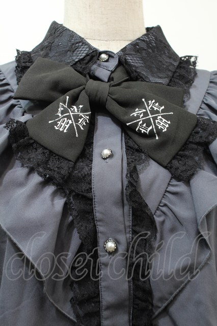 NOEMIE / ゴシックレースフリルリボンブラウス 紺 S-25-10-16-032-LO-BL-HR-ZS