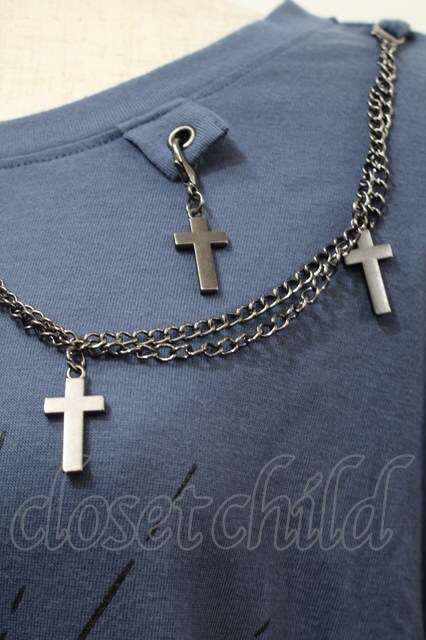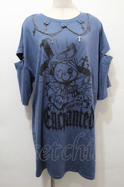 NOEMIE / 病みねこチェーンダメージユニセックスTシャツ 紺 S-25-10-16-033-LO-TO-HR-ZS [2100020000032773-S-25-10-16-033-LO-TO-HR-ZS]