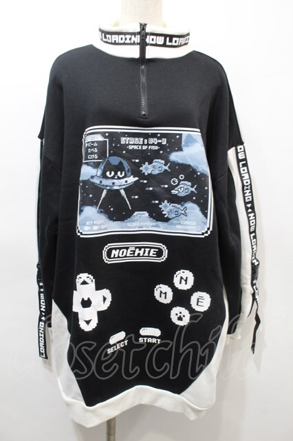 NOEMIE / 裏起毛ゲームねこユニセックスチュニック 黒x白 S-25-10-16-039-LO-TO-HR-ZS [2100020000032721-S-25-10-16-039-LO-TO-HR-ZS]