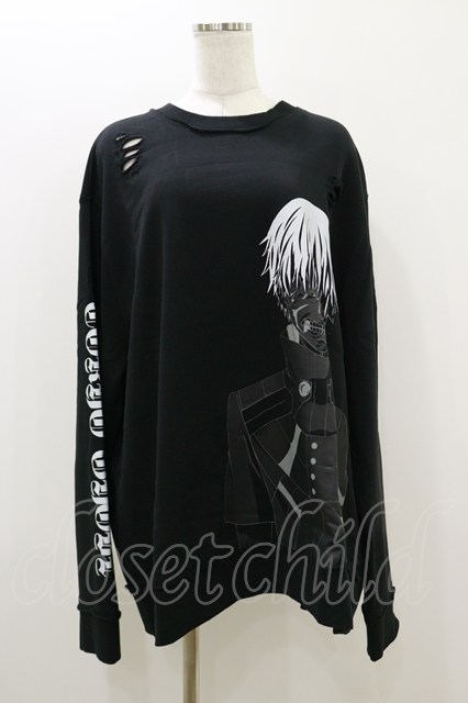 QOOZA / 東京喰種×QOOZA金木研 ダメージスウェット ブラック H-25-10-21-2035-PU-TO-KB-ZH