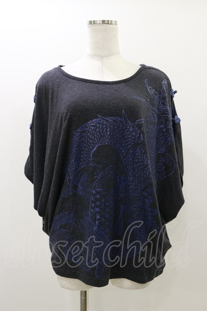 Qutie Frash / チャイナボタンドルマンTシャツ グレー H-25-10-26-016-QU-TO-KB-ZH