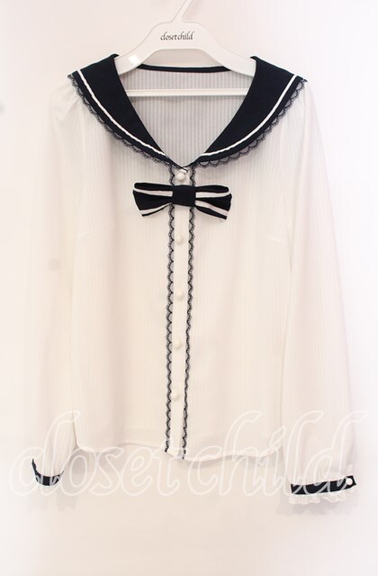 Secret Honey / シャドーストライプセーラーブラウス シロ×ネイビー O-25-10-21-091-CA-BL-IG-OS [2100080000062124-O-25-10-21-091-CA-BL-IG-OS]