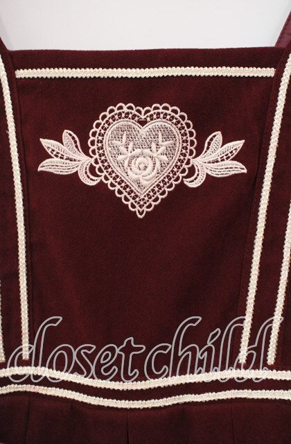Secret Honey / ハート刺繍エプロン付きジャンパースカート ワイン O-25-10-21-079-CA-OP-IG-OS [2100080000062110-O-25-10-21-079-CA-OP-IG-OS]