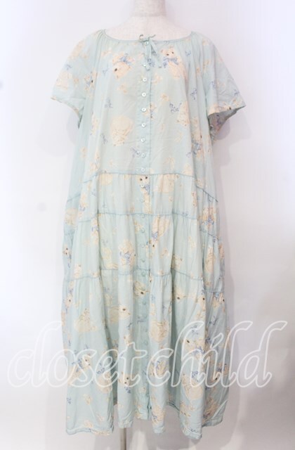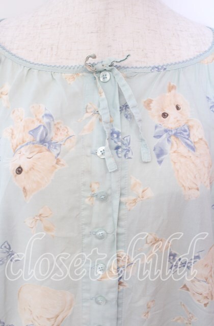 PINK HOUSE / 猫ちゃんプリントワンピース【お直しあり】 サックス O-25-10-21-010-LO-OP-IG-OS