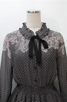 axes femme / レース柄プリントワンピース 黒 S-25-10-20-024-AX-OP-HR-ZS