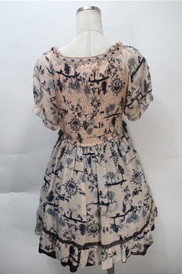 axes femme / シフォンピクニック柄チュニ 紺xベージュ S-25-10-20-027-AX-OP-HR-ZS