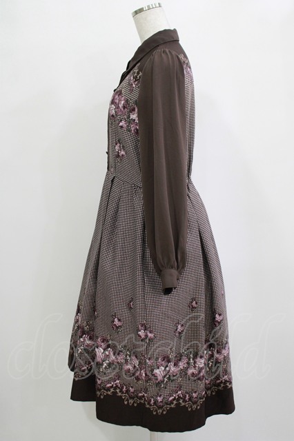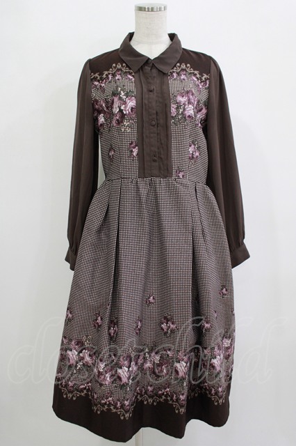 axes femme / バラ×千鳥柄襟付ワンピース M ブラウン H-25-10-27-017-AX-OP-NS-ZH [2100030000076088-H-25-10-27-017-AX-OP-NS-ZH]