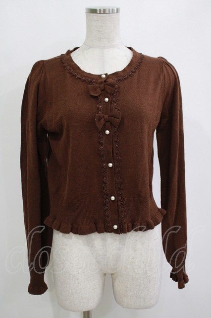 axes femme kawaii / 2つリボンカーディガン M ブラウン H-25-10-27-064-AX-TO-NS-ZH