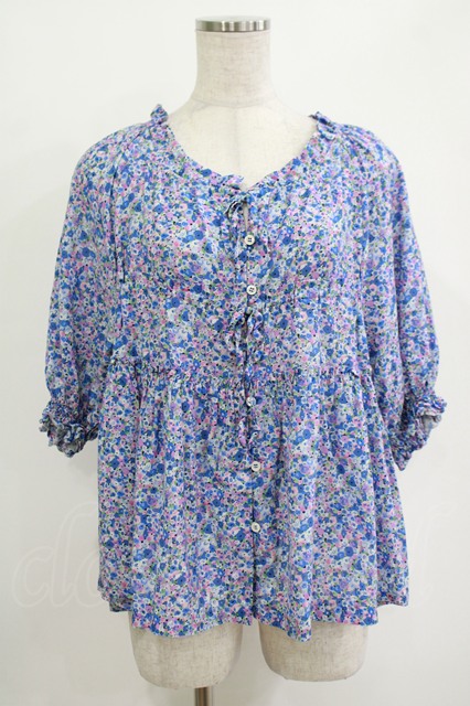 Jane Marple / Bonjour Millefleursスモックブラウス ブルー H-25-10-27-031-JM-BL-KB-ZH [2100030000034402-H-25-10-27-031-JM-BL-KB-ZH]