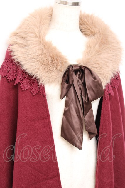 axes femme / ファーティペット付きストール ワイン Y-25-10-20-004-AX-TO-SZ-ZY