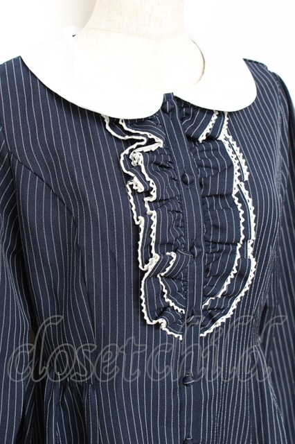 Ank Rouge / フロントフリルストライプシャツワンピース M ネイビー Y-25-10-20-073-CA-OP-SZ-ZY
