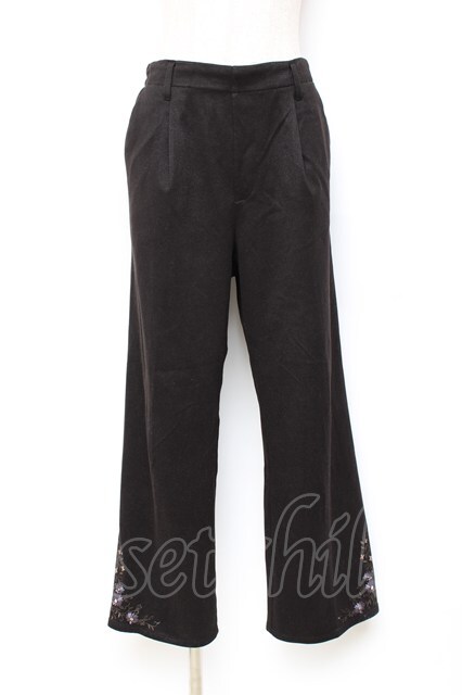 axes femme / 裾刺繍ストレートカットパンツ L 黒 Y-25-10-20-098-AX-PA-SZ-ZY