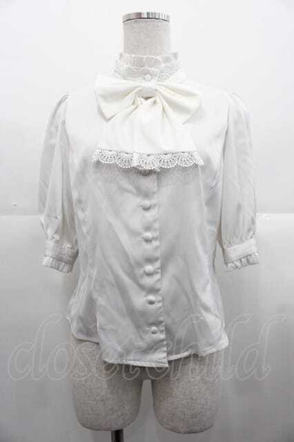 Sheglit / スタンドカラーリボンパフブラウス M 白 I-25-10-21-010-EL-BL-SA-ZI