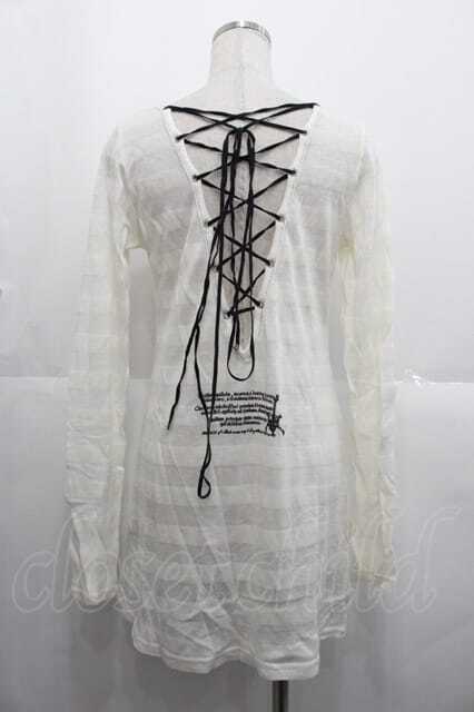 h.ANARCHY / 後ろ編み上げ英字プリントカットソー アイボリーX黒 I-25-10-21-021-HN-TO-SA-ZI [2100060000043542-I-25-10-21-021-HN-TO-SA-ZI]