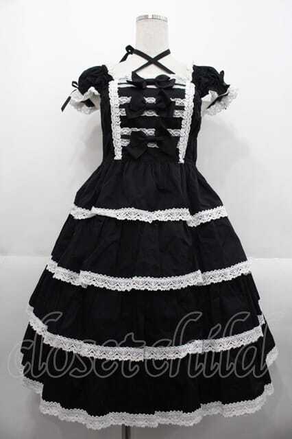 BABY,THE STARS SHINE BRIGHT / リボンミルキーシュガージャンパースカート 黒X白 I-25-10-21-036-BA-OP-SA-ZI