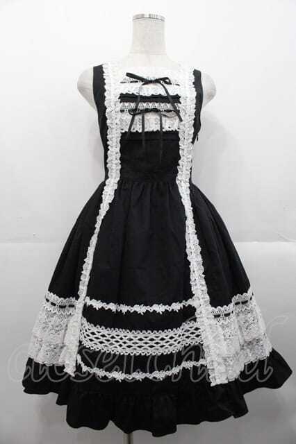 BABY,THE STARS SHINE BRIGHT / レースフリルジャンパースカート 黒X白 I-25-10-21-043-BA-OP-SA-ZI