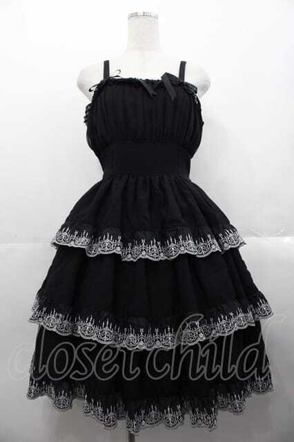Moi-meme-Moitie / シャンデリアレース3段ティアードジャンパースカート 黒X白 I-25-10-21-057-MO-OP-SA-ZI