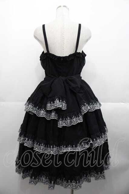Moi-meme-Moitie / シャンデリアレース3段ティアードジャンパースカート 黒X白 I-25-10-21-057-MO-OP-SA-ZI [2100060000042818-I-25-10-21-057-MO-OP-SA-ZI]