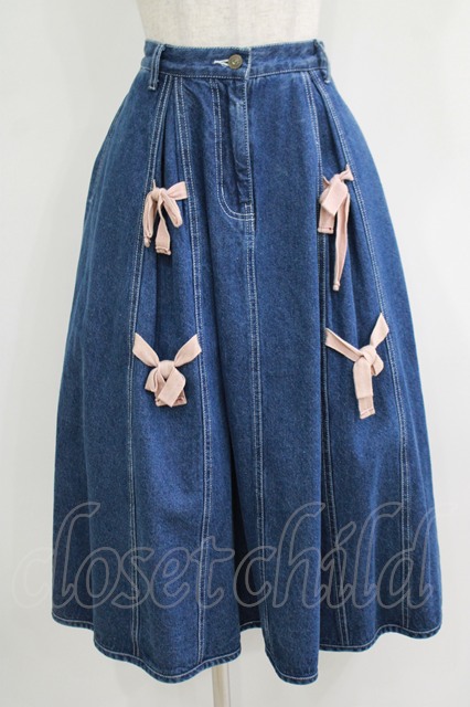 merry jenny / ダブルリボンデニムスカート ブルー H-25-10-28-048-LO-SK-KB-ZH [2100030000067288-H-25-10-28-048-LO-SK-KB-ZH]