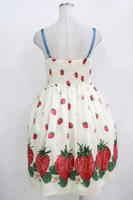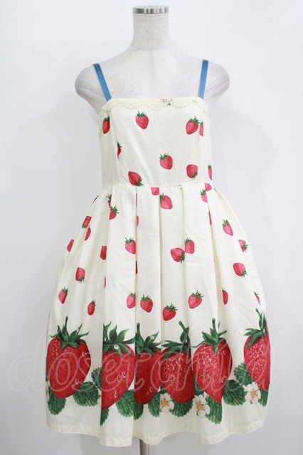 Leur Getter / ストロベリープリントリボンブローチ付キャミワンピース オフ H-25-10-28-038-LU-OP-KB-ZH
