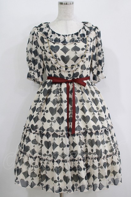 Leur Getter / トランプモチーフシフォンワンピース M アイボリー H-25-10-28-037-LU-OP-KB-ZH