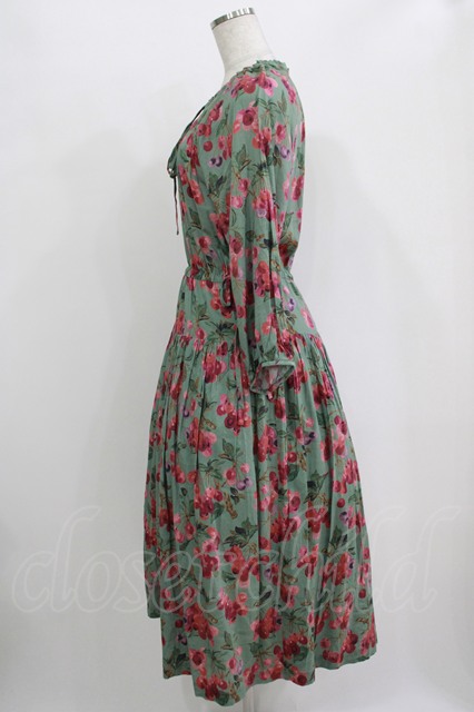 Jane Marple Dans Le Salon / Winter cherries drawstring dress グリーン H-25-10-28-008-JM-OP-KB-ZH