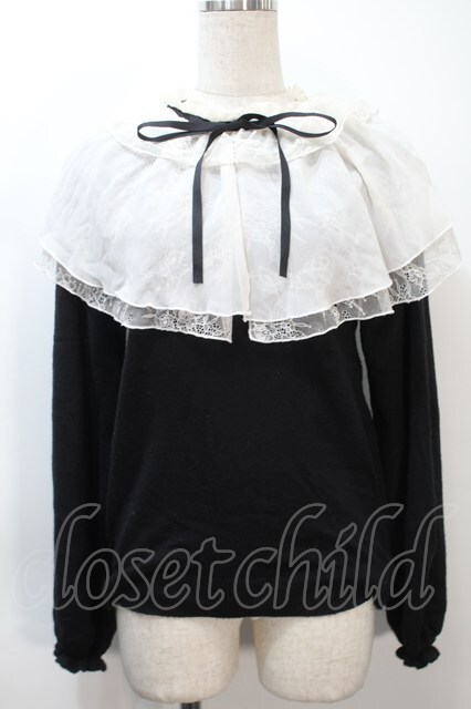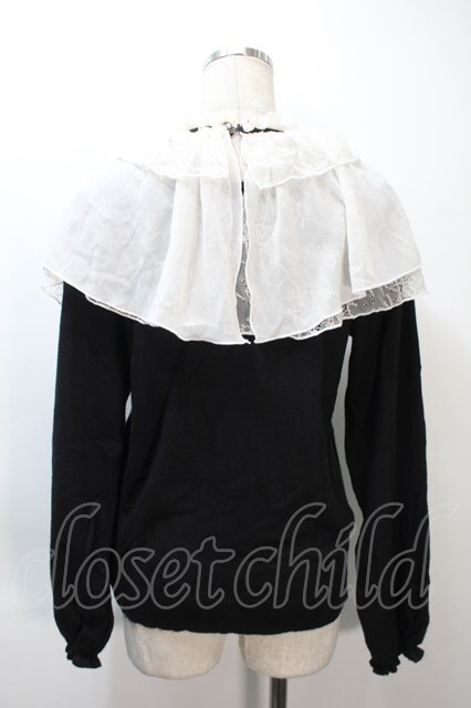 axes femme / レース重ねケープニットプルオーバー 黒 S-25-10-21-007-AX-TO-AS-ZS