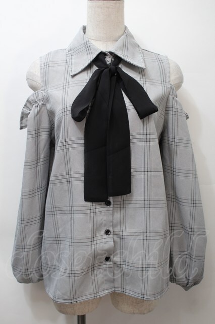 MA*RS / 肩あきチェックブラウス グレーx黒 S-25-10-21-014-EL-BL-AS-ZS