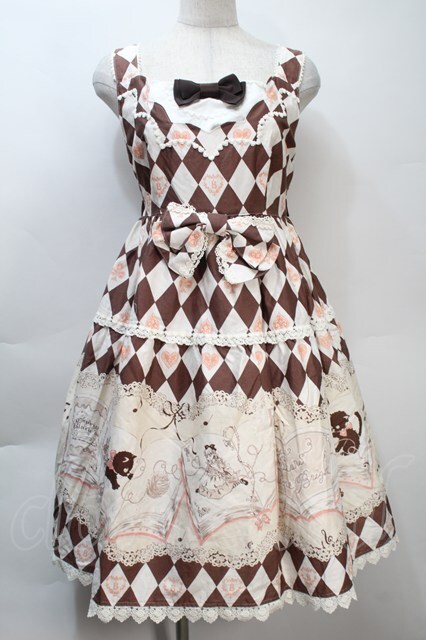 BABY,THE STARS SHINE BRIGHT / にゃんとも可愛いアリスと黒猫柄ジャンパースカートI型 ブラウン S-25-10-21-032-BA-OP-HR-ZS