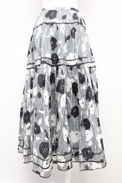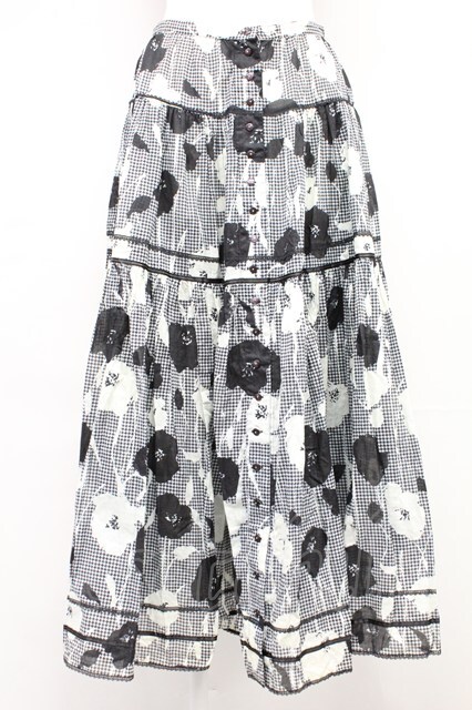 PINK HOUSE / フラワー千鳥柄スカート 黒X白 T-25-10-29-008-LO-SK-SA-ZT [2100060000036470-T-25-10-29-008-LO-SK-SA-ZT]