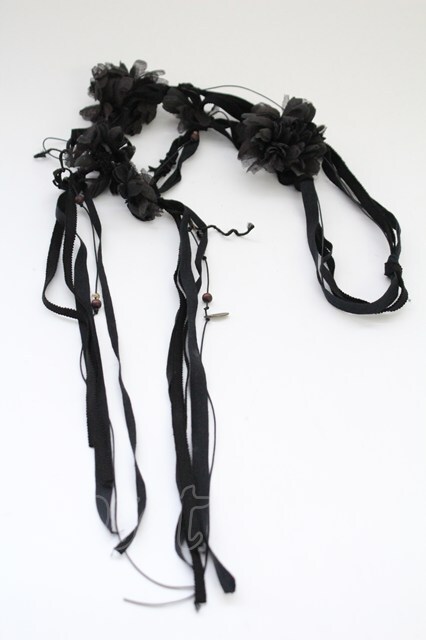 INGEBORG / フラワーモチーフリボン 黒 T-25-10-29-021-LO-AC-SA-ZT
