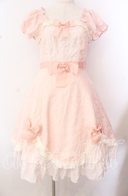 milky ange / ジャガードパフスリーブワンピース ピンク O-25-10-23-037-EL-OP-IG-OS