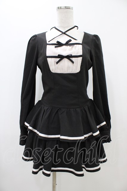 pium / クロステープバイカラーティアードワンピース Free ブラック H-25-10-29-039-0-OP-NS-ZH