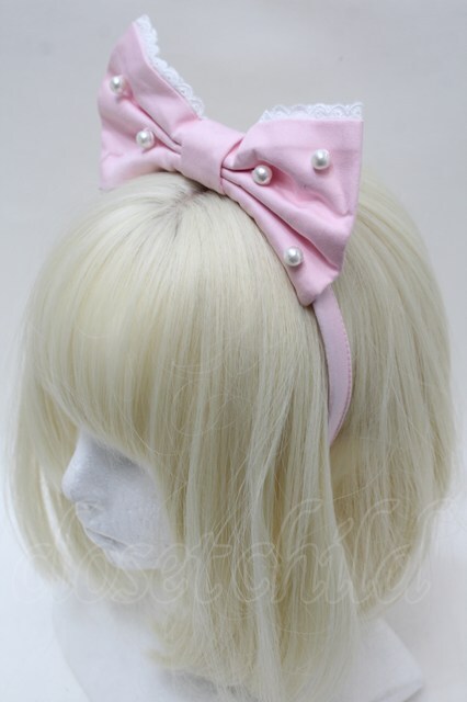 Angelic Pretty / パールリボンカチューシャ ピンク S-25-10-23-019-AP-OP-AS-ZS