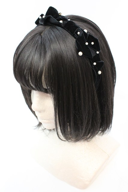 Emily Temple cute / パール&ベルベットリボンカチューシャ クロ O-25-10-23-1014-ET-AC-IG-ZT012