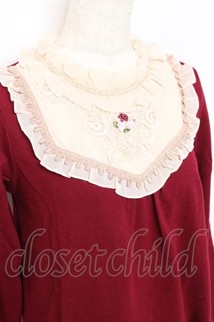 axes femme / 胸元モチーフブロッキングプルオーバー M ワイン Y-25-10-25-055-AX-TO-SZ-ZY