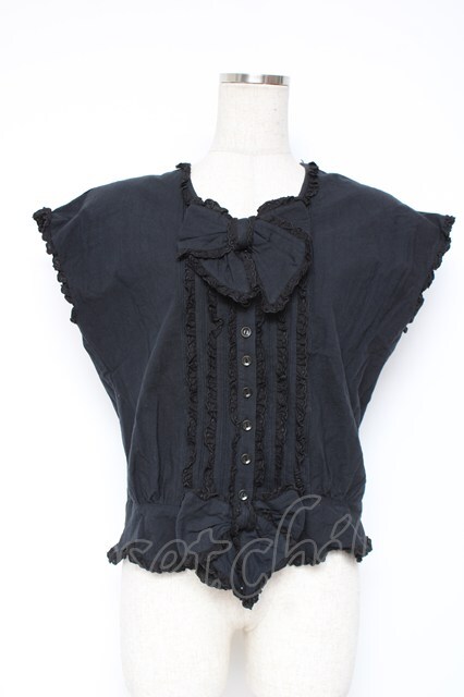 PINK HOUSE / リボン付きフリルノースリブラウス F 黒 Y-25-12-20-012-LO-BL-SZ-ZY [2100070000052200-Y-25-12-20-012-LO-BL-SZ-ZY]