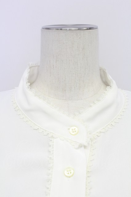 MIHO MATSUDA / 立ち襟シフォンロングブラウス L 白 T-25-10-24-005-GO-BL-SA-ZT