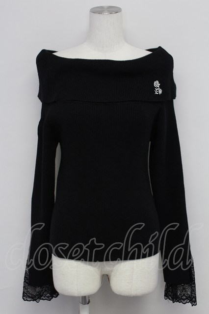 axes femme / ローズ刺繍オフショルニット クロ T-25-10-24-013-AX-TO-SA-ZT