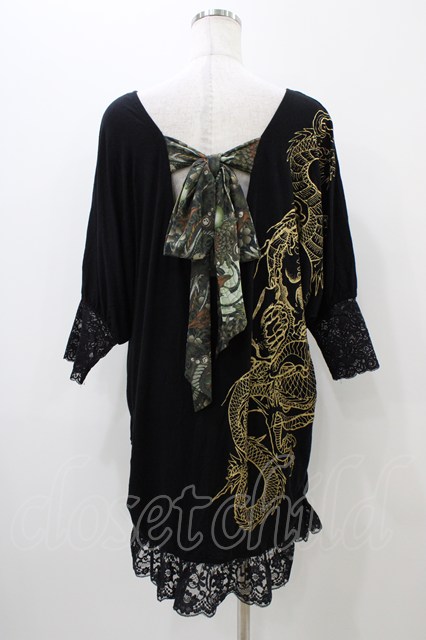 Qutie Frash / リボン付きビックT 黒 H-25-11-01-1033-QU-TO-KB-ZH