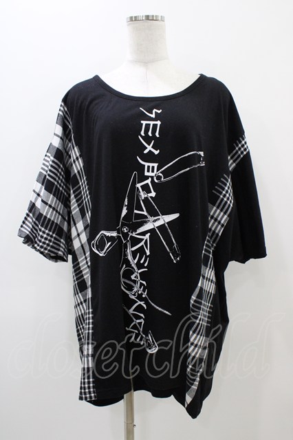 SEX POT ReVeNGe / チェック切替プリントカットソー 黒 H-25-11-01-1032-SP-TO-KB-ZH