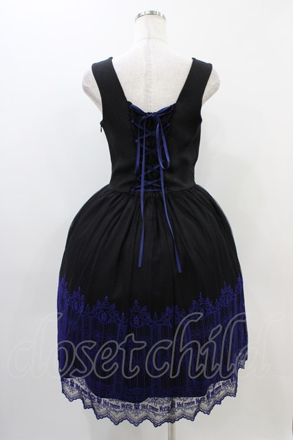 Moi-meme-Moitie / 燭台エンブレムゲートジャンパースカート 黒×青 H-25-11-01-1009-MO-OP-KB-ZH