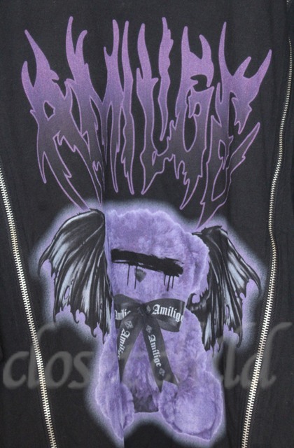 Amilige / DEVIL BEARプリントロングZIP Tシャツ ブラック O-25-10-24-035-PU-TS-YM-OS