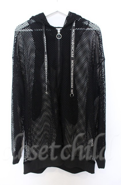 PSYCHO NATION / うさみみメッシュパーカー ブラック O-25-10-24-060-LO-TO-YM-OS