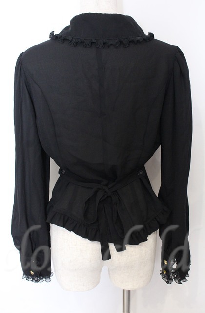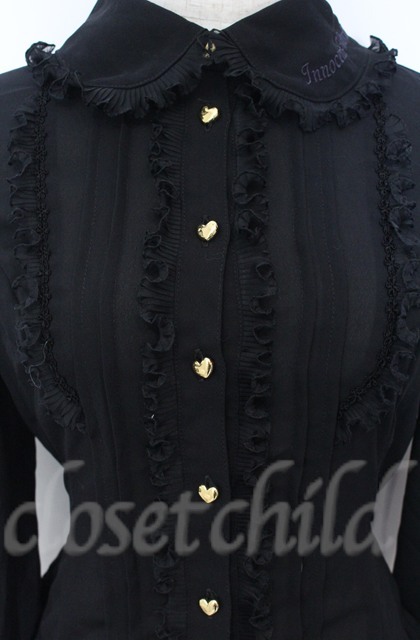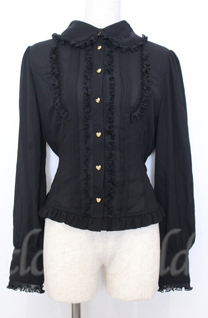 Innocent World / プリーツフリル刺繍ブラウス M クロ O-25-10-24-013-IW-BL-YM-OS