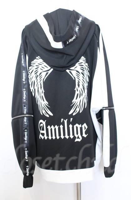 Amilige / ドルマンスリーブジャージZIPパーカー F ホワイトxブラック O-25-10-24-044-PU-TO-YM-OS [2100080000062294-O-25-10-24-044-PU-TO-YM-OS]
