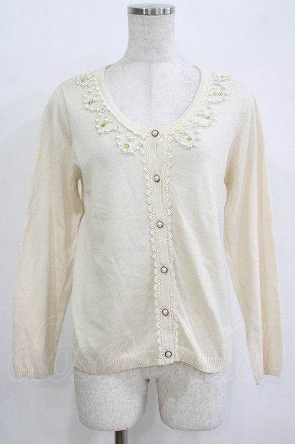 axes femme / パール使いカーディガン M 生成り H-25-11-01-065-AX-TO-NS-ZH