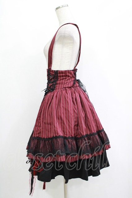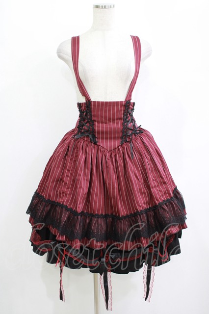 逗?(海外ロリータブランド) / ストライプジャンパースカート Free ボルドー H-25-11-01-033-EL-OP-NS-ZH